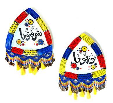Hand-Painted Ceramic Wall Hanging with Handmade Blue Crochet Tassels